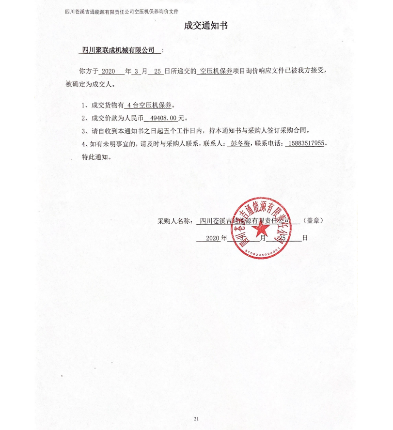 成交通知書