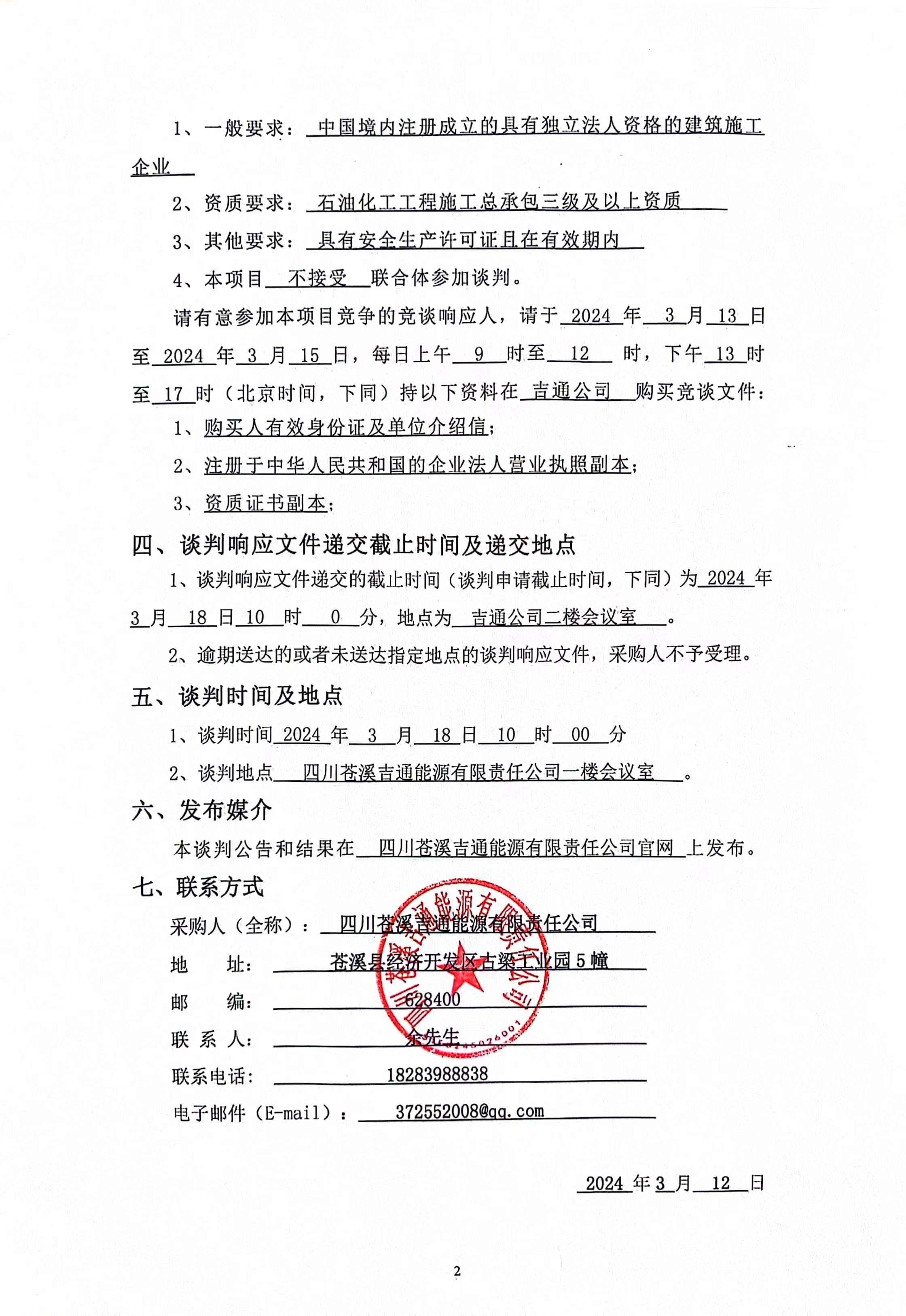 競爭性談判公告