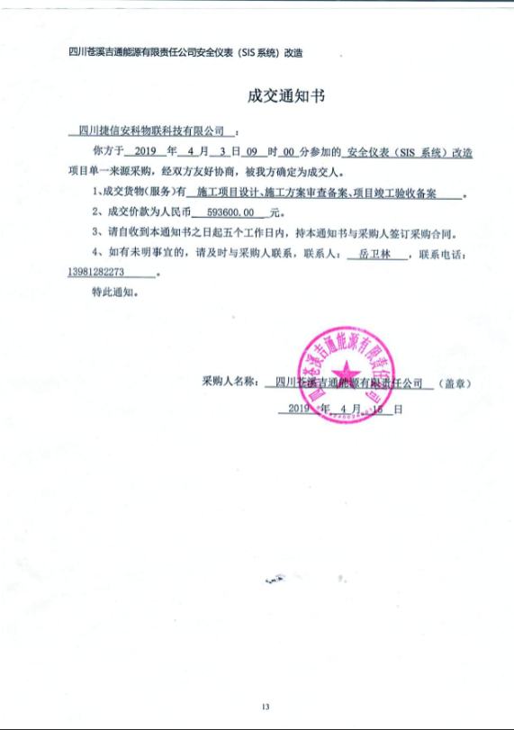成交通知書